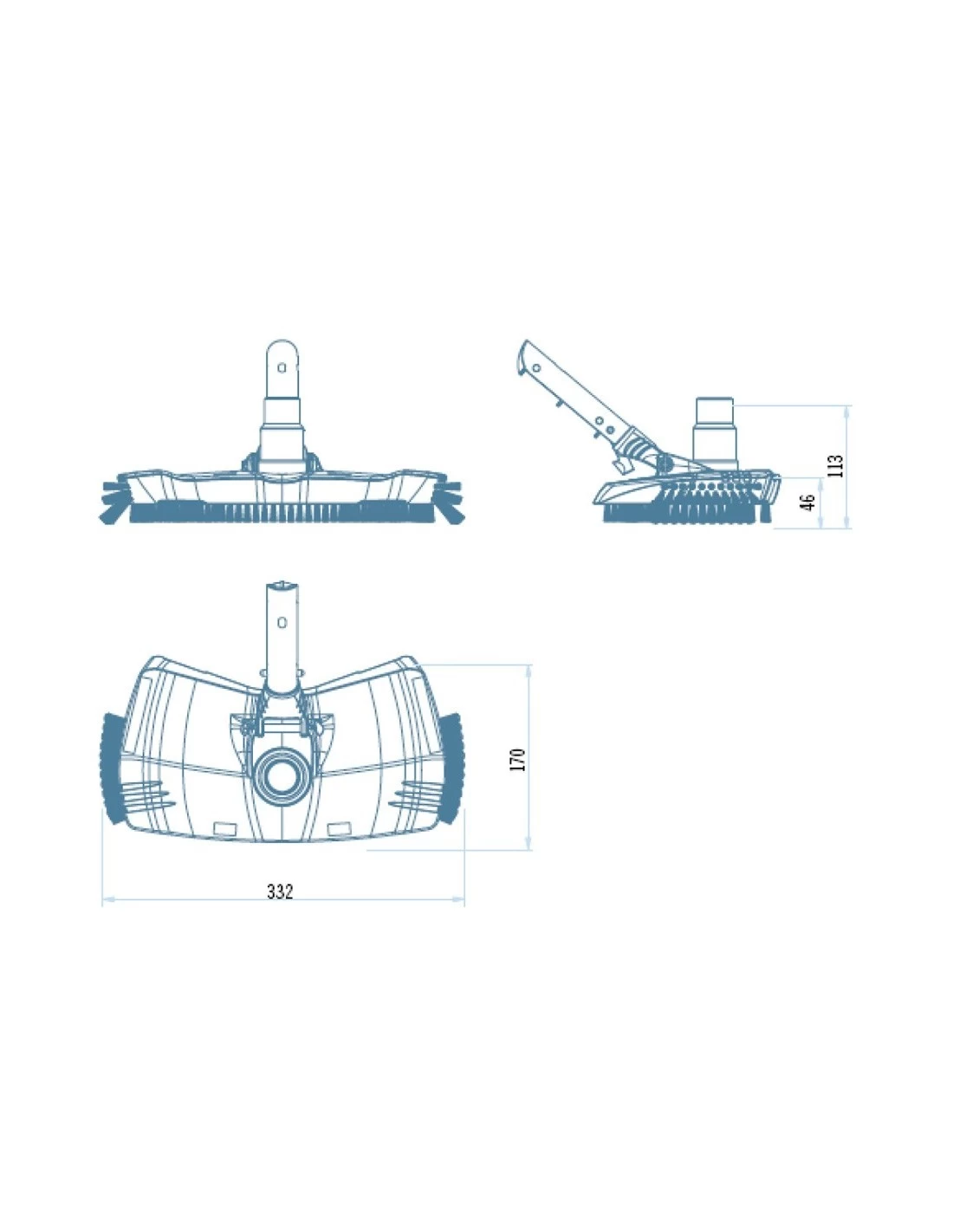 Possibilité de fixation au manche télescopique par le biais d’un système de clips ou à vis papillon.