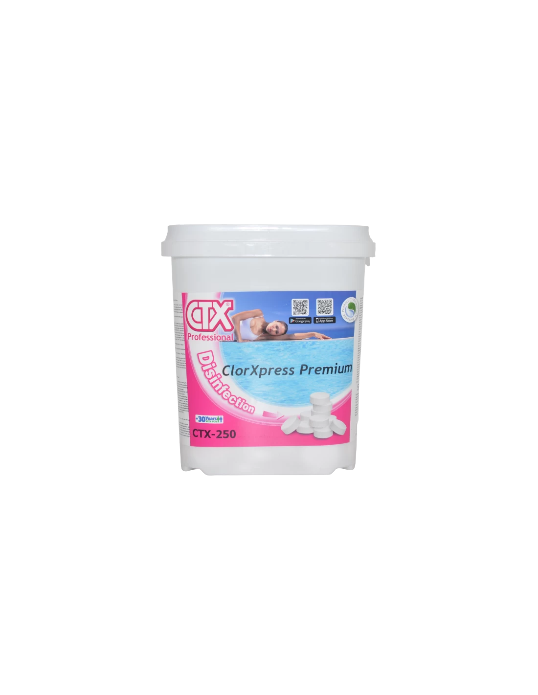 Par son action effervescente rapide, CTX-250 assure une désinfection choc de la piscine très efficace.